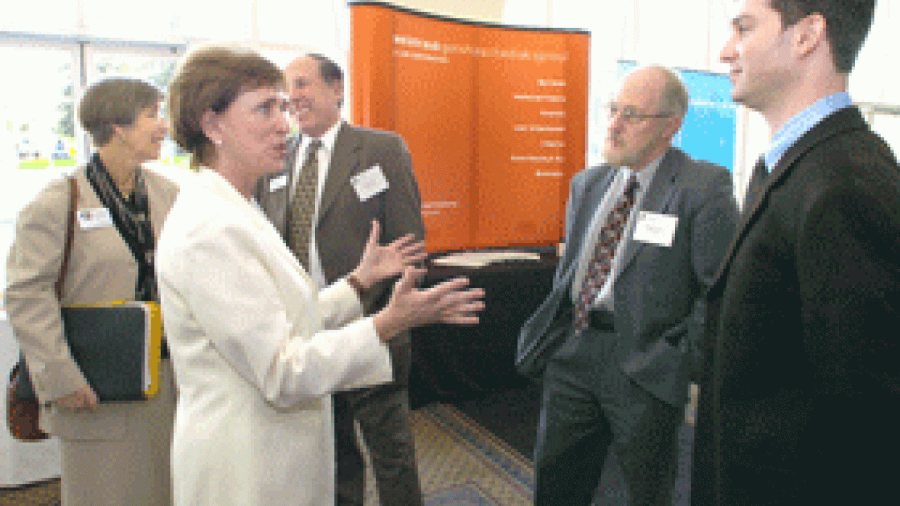 Graduate School of Management Dean Nicole Biggart talks to William Lacy, vice provost for outreach and international programs, and Scott Lenet of the venture capital firm DFJ Frontier at the Sacramento Regional Life Science Summit March 4. Organized by UC Davis CONNECT, the summit brought together more than 200 business people, venture capital investors, university researchers and others to discuss trends affecting the growing life sciences business sector in the Sacramento region. Session topics included dealing with intellectual property and regulatory issues; raising investment capital; communicating controversial issues to the public; and overviews of research in biophotonics, nanotechnology and genomics at UC Davis and national labs.